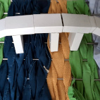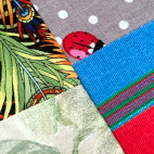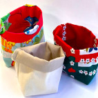 Im Laufe der vier Tage sind große bunte Bali-Fahnen entstanden, die die Besucher am Eingang des KIX-/Zirkusgeländes empfingen. Dazu wurden Muster und Motive entworfen und viele kleine kleine Wimpel gestaltet, die das Zirkuszelt schmücken. (Leitung: Ina Weiß im Kooperation mit den Mobilen Spielaktion Karlsruhe)