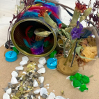 Mit alten Märchen aus Nordamerika träumen wir uns in die Ferne. Auf Spurensuche in der Natur sammeln, forschen und gestalten wir. Es entstehen Baumgesichter aus Ton, selbstgebaute Instrumente, farbenfrohe Gemälde und mehr. Ein verwunschener Sinnesgarten bietet eine Heimat und fordert die natürliche Entdeckungs- und Gestaltungsfreude der Kinder heraus.