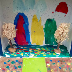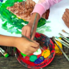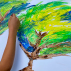 daraus eigene Farben her – sogar aus Obst und Gemüse! Damit gestalten sie mit selbsthergestellten Pinseln einzigartige Bilder und kreative Zeichnungen. Aus Naturmaterialien und Ton werden fantasievolle Collagen gezaubert und Bäume mit ihren frechen Baumfratzen zum Leben erweckt. (Leitung: Daniel Cämmerer und Jennifer Drews, gefördert von "Kultur macht stark - Künste öffnen Welten")