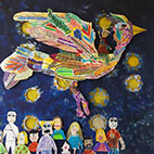 Die Ausstellung zu den 7. Kinderliteraturtagen in Karlsruhe beschäftigt sich mit dem Verlust von Lebensraum, wirtschaftlichen Sicherheiten und kultureller Identität sowie der Suche nach einer neuen Heimat. Dieses aktuelle Phänomen und seine Problematik wird am Beispiel märchenhafter Inhalte thematisiert und in verschiedenen künstlerischen Techniken und Materialien umgesetzt. gezeigt wurden Arbeiten von Kurskindern aus der Kindermalwerkstatt, Schülerinnen und Schüer der Rennbuckel-Grundschule aus Karlsruhe und der Pestalozzi-Sonderschule aus Rastatt. (Leitung: Bärbel und Ina Weiß gefördert durch Round Table 46 und Kulturbüro im Rahmen der EKT Karlsruhe)